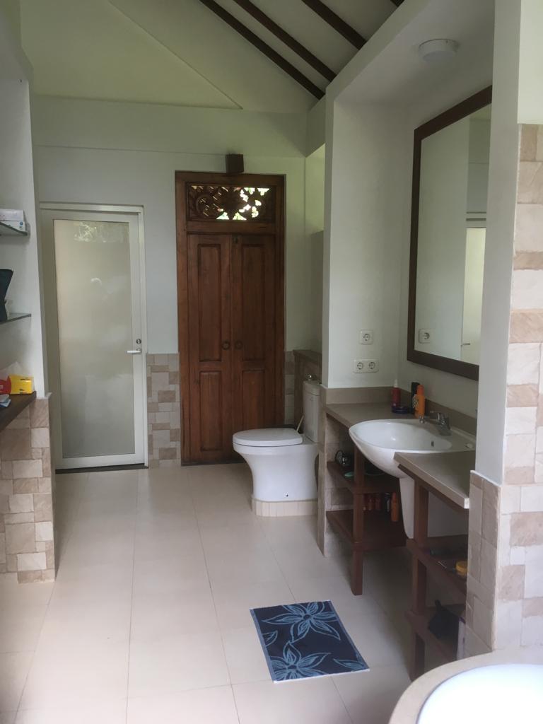 The bathroom, accessible both from the master bedroom and from the living -room (via a short corridor), contains an open-air shower, a bathtub for two with additional shower attachment, washbasin and WC.